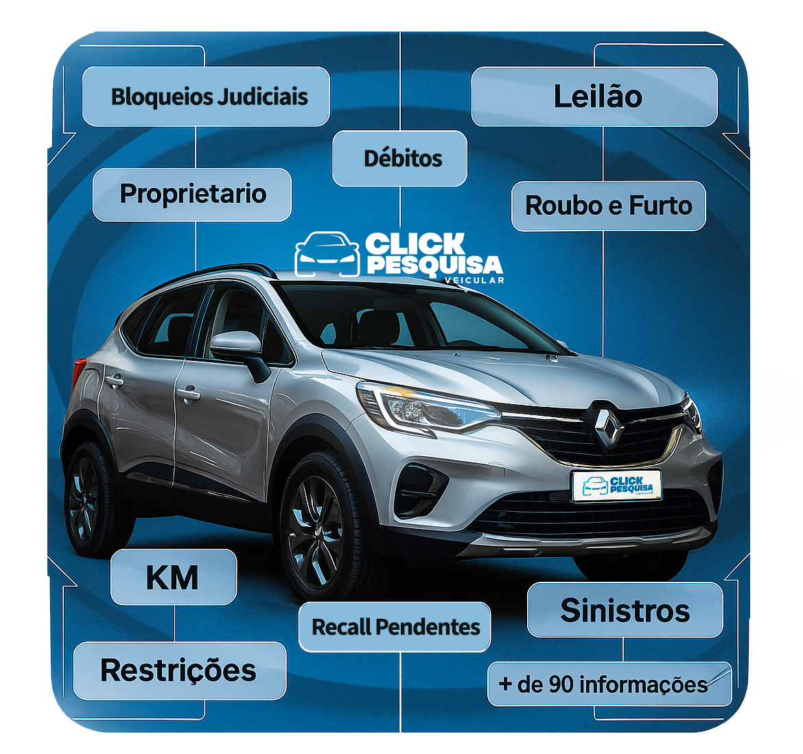 No ClickPesquisa Veicular você recebe o histórico do carro instantaneamente. Veja como é simples:
